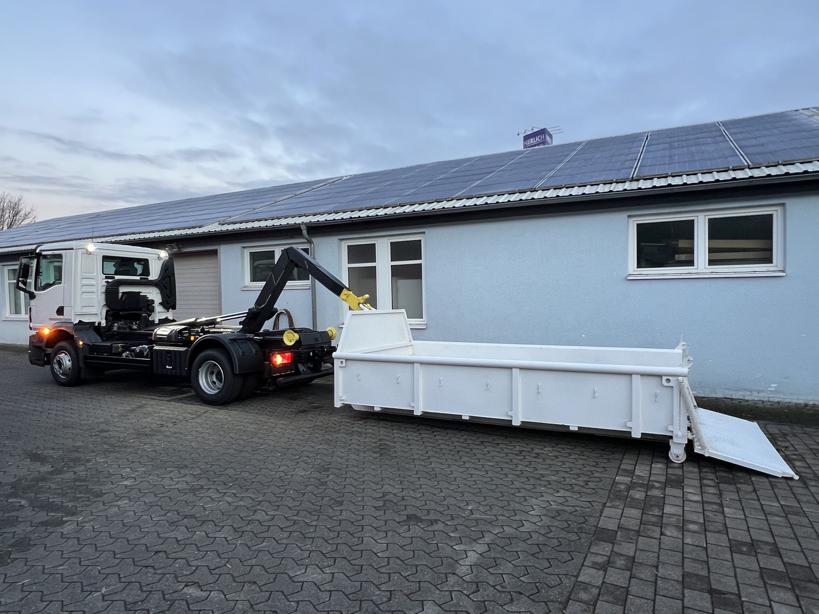 Abrollvorrichtung für Container nach DIN Norm 30722-1, montiert auf MAN 15.290 BL 4x2 Fahrgestell