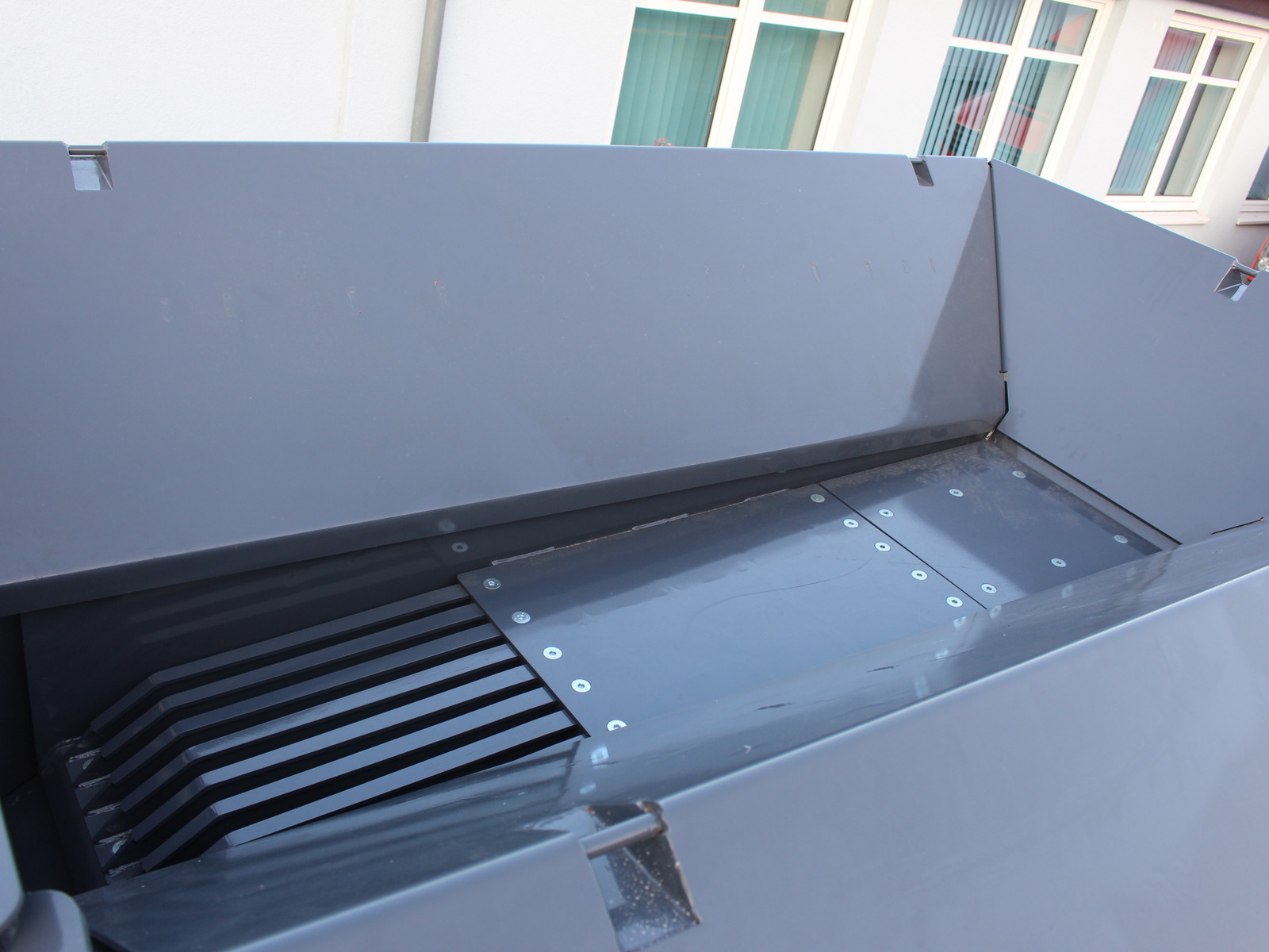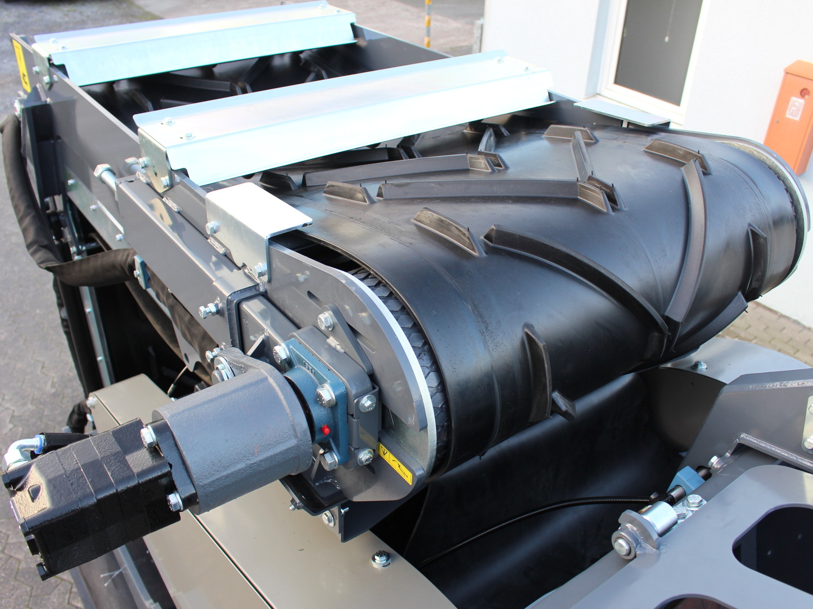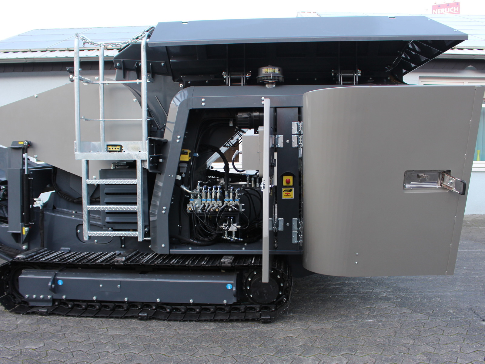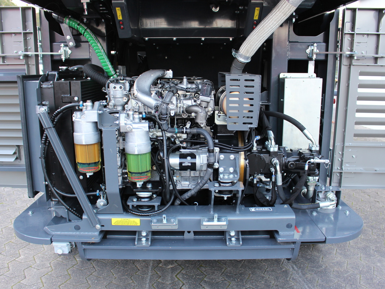 - Sehr guter Zugang zum Motor/Hydraulik etc. (Heckklappen und Seitenklappen öffnen sich um 90° und gewähren vollständigen Zugang für Wartungsarbeiten
