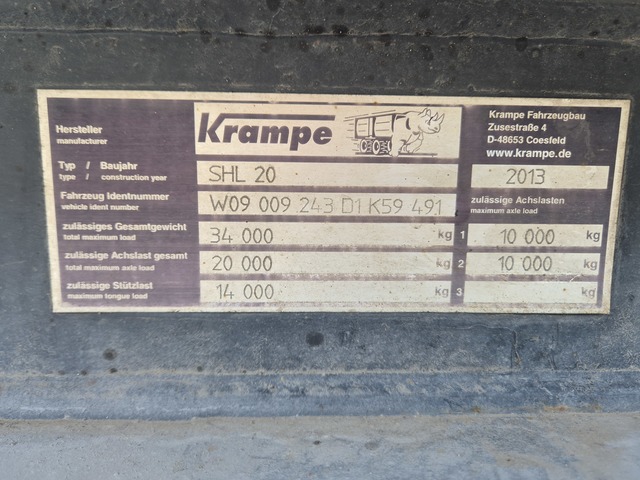 - Krampe SHL20 2-Achs Auflieger mit Liftachse, BPW Achsen